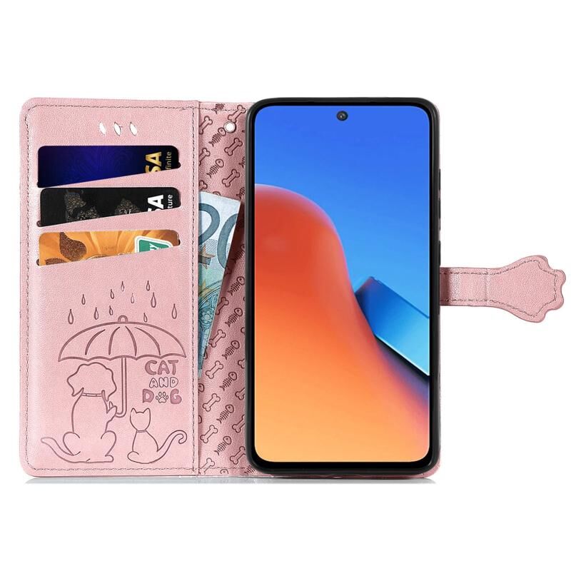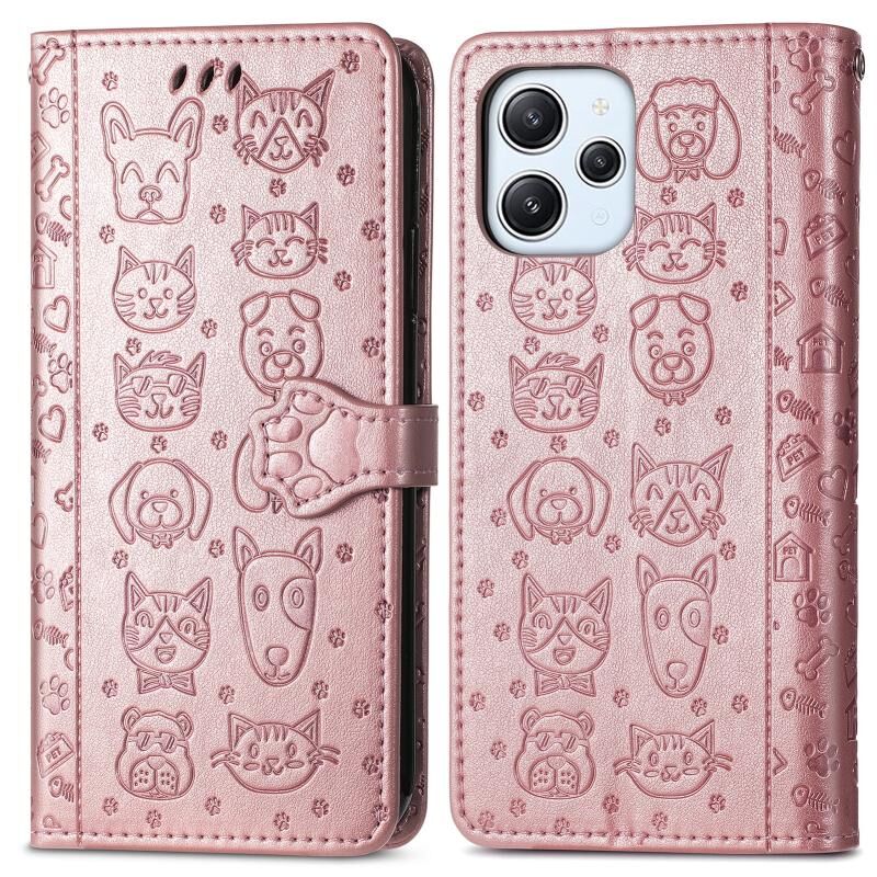 Θήκη τηλεφώνου δερμάτινη ανάγλυφη με σχέδια γάτας και σκύλου για Xiaomi Redmi 12 (Μωβ)