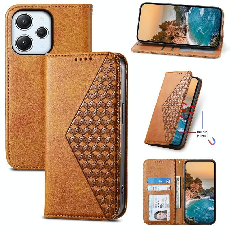 Για Xiaomi Redmi 12 Cubic Grid Calf υφή μαγνητική δερμάτινη θήκη τηλεφώνου (Καφέ)