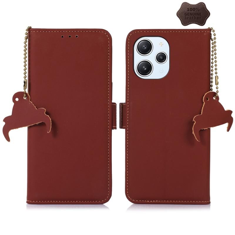 For Xiaomi Redmi 12 Genuine Leather Magnetic RFID Leather Phone Case(Coffee)