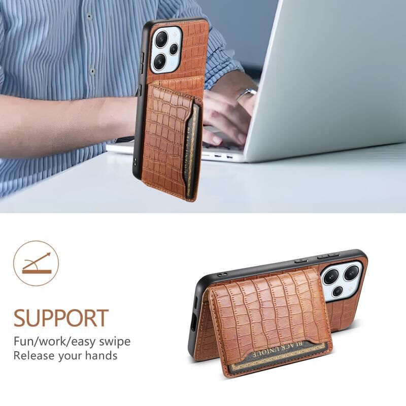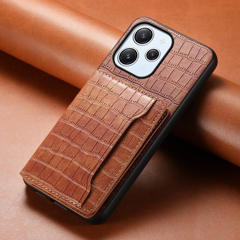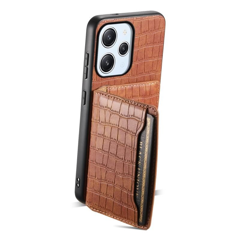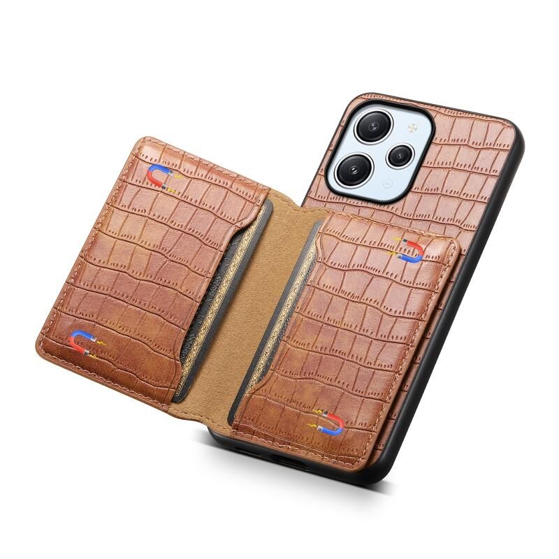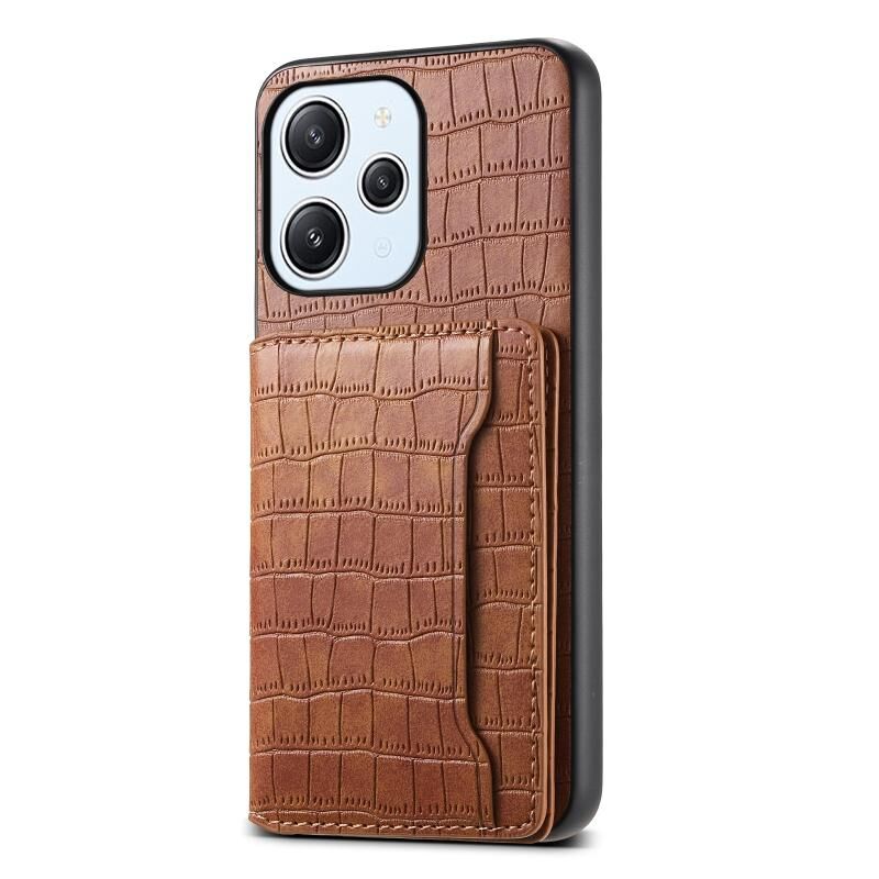 Θήκη κινητού τηλεφώνου πλήρους κάλυψης με υφή κροκόδειλου και σχέδιο θήκης καρτών για Xiaomi Redmi 12/Note 12R (Καφέ)
