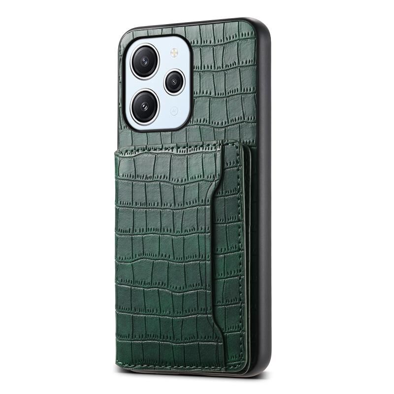 Θήκη κινητού τηλεφώνου πλήρους κάλυψης με υφή κροκόδειλου και σχέδιο θήκης καρτών για Xiaomi Redmi 12/Note 12R (πράσινο)