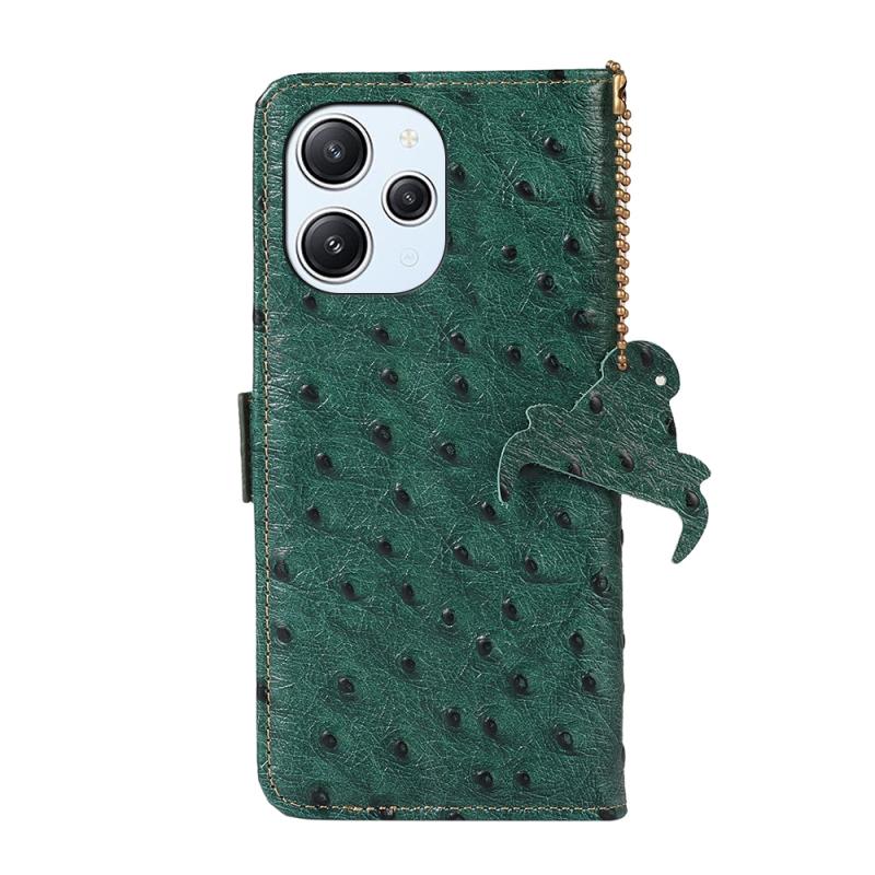 For Xiaomi Redmi 12 Ostrich Pattern Genuine Leather RFID Phone Case(Green)