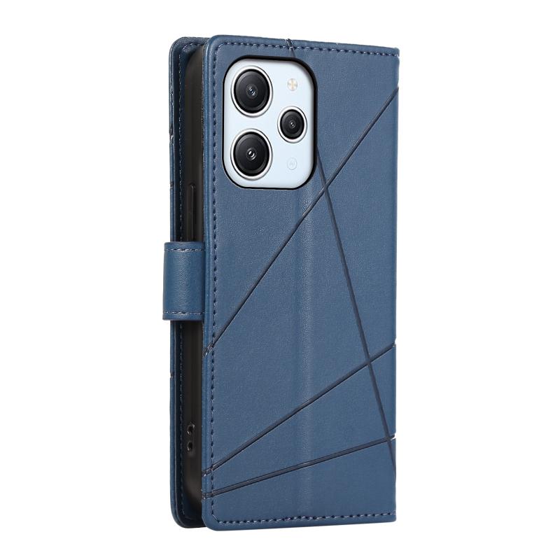 For Xiaomi Redmi 12 PU Genuine Leather Texture Embossed Line Phone Case(Blue)