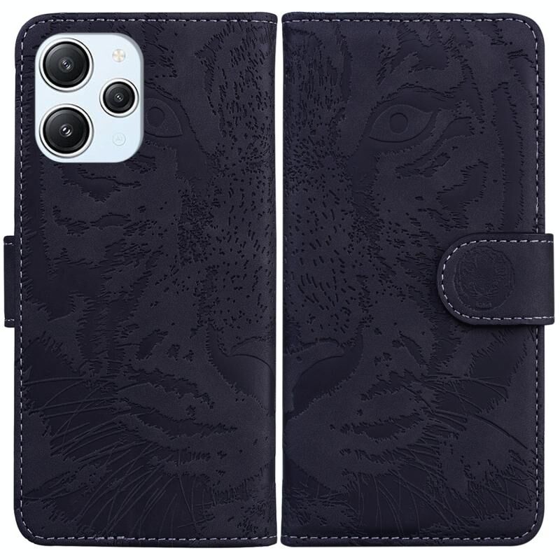 Θήκη δερμάτινη με ανάγλυφο σχέδιο για Xiaomi Redmi 12 Tiger (Μαύρο)