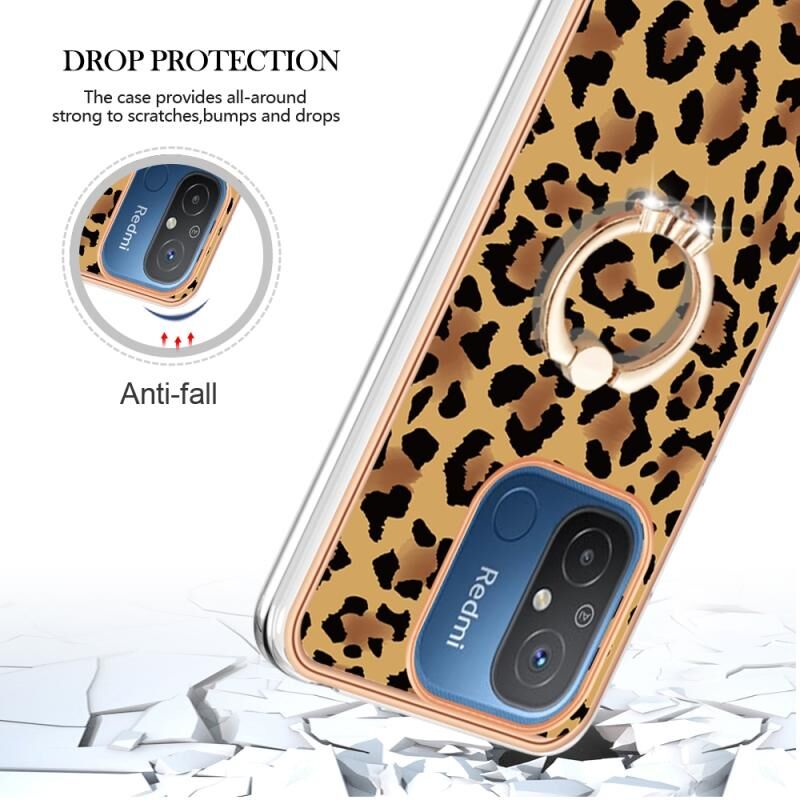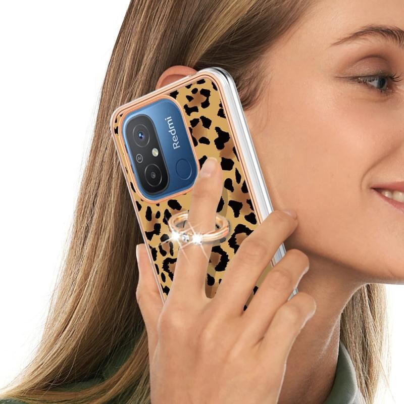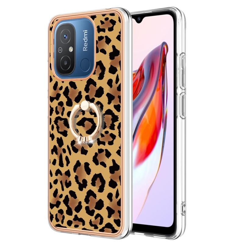 Θήκη τηλεφώνου με δακτύλιο στήριξης και σχέδιο λεοπάρδαλης, με ηλεκτρολυτική επικάλυψη διπλής όψης IMD για Xiaomi Redmi 12C / 11A 4G.