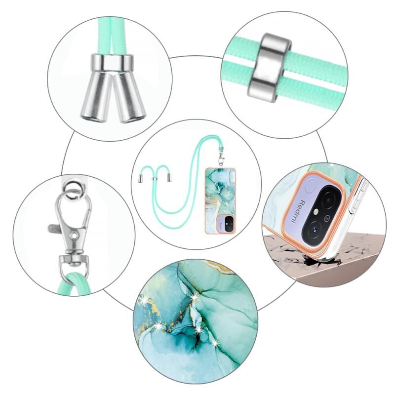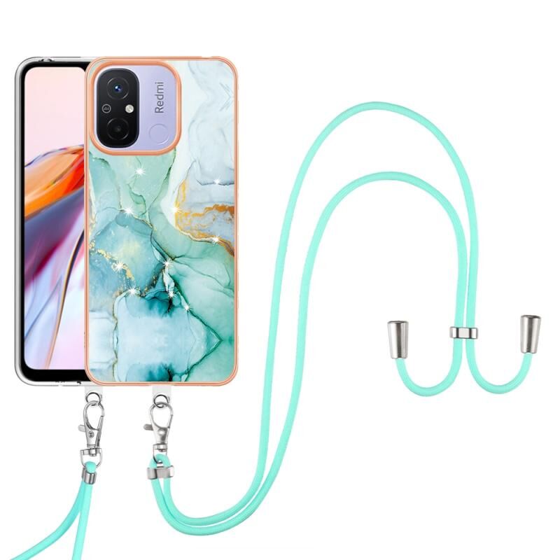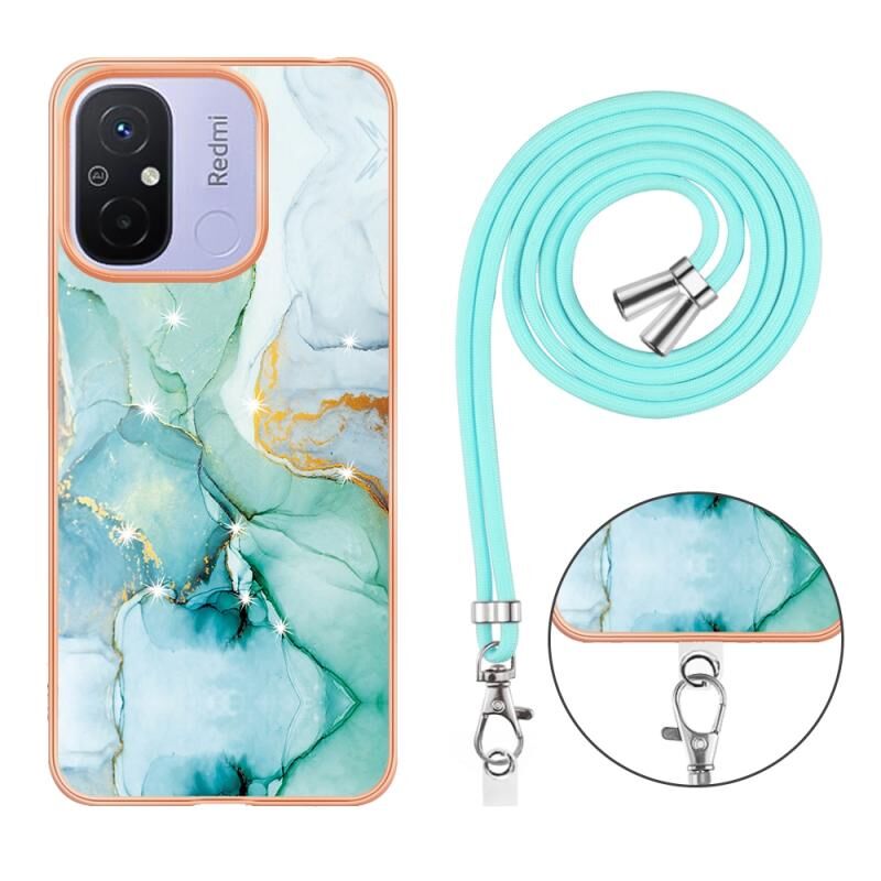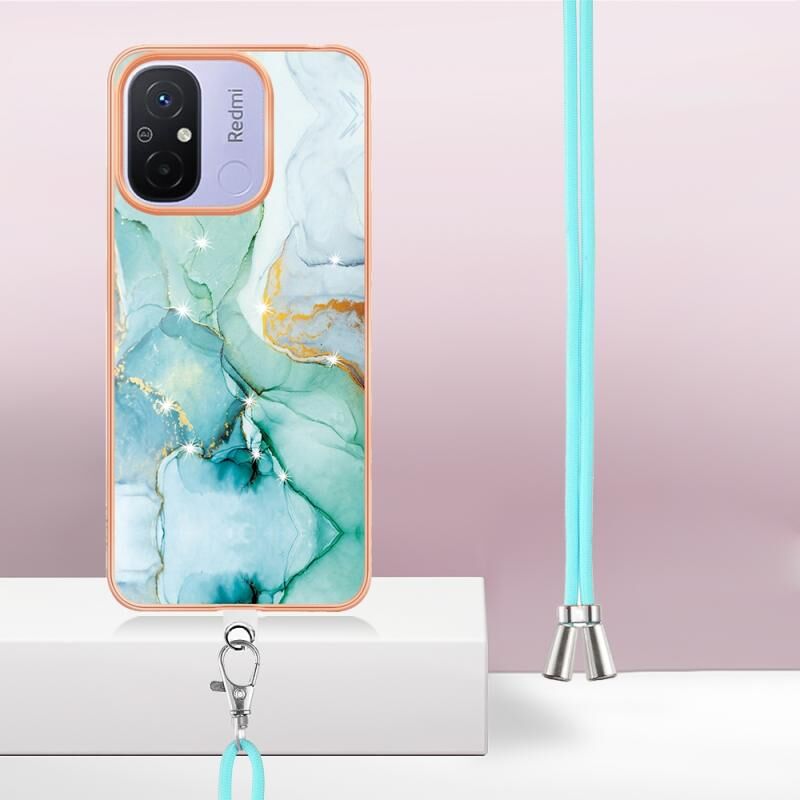 For Xiaomi Redmi 12C/11A 4G Global Electroplating Marble Dual-side IMD Phone Case with Lanyard(Green 003)