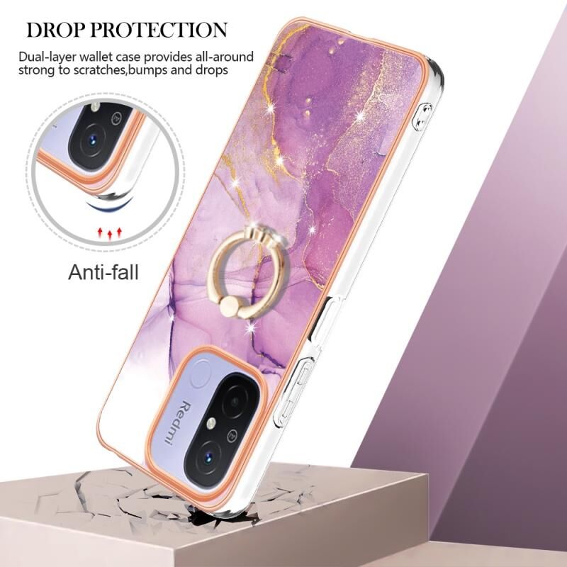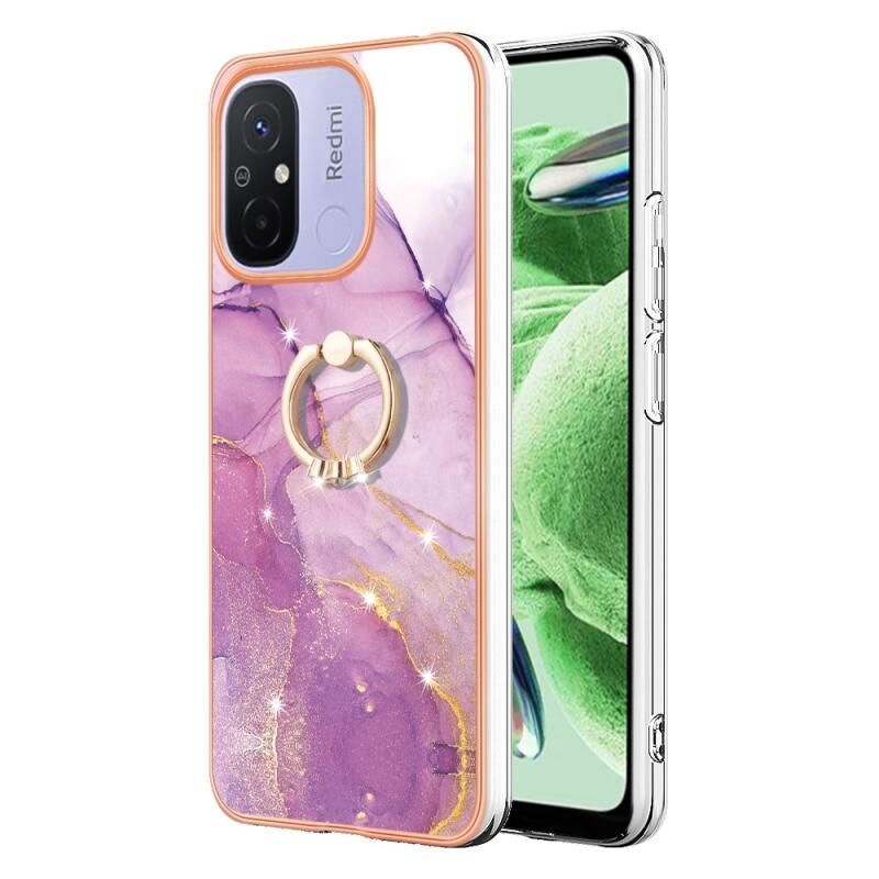 Θήκη κινητού τηλεφώνου Xiaomi Redmi 12C / 11A 4G Global Electroplating Marble IMD TPU με δακτύλιο στήριξης (Μωβ 001)