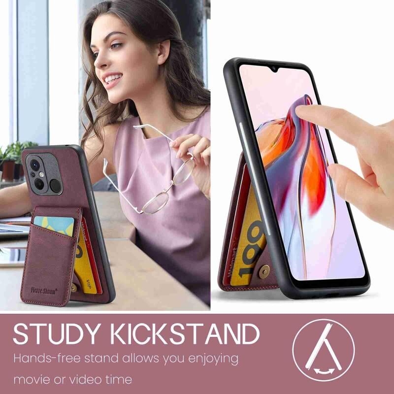 Για Xiaomi Redmi 12C / 11A Fierre Shann Crazy Horse κάρτα κάτοχος πίσω κάλυμμα PU υπόθεση τηλεφώνου (κόκκινο κρασί) (Κρασοκόκκινο)