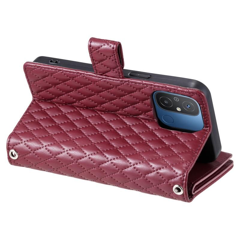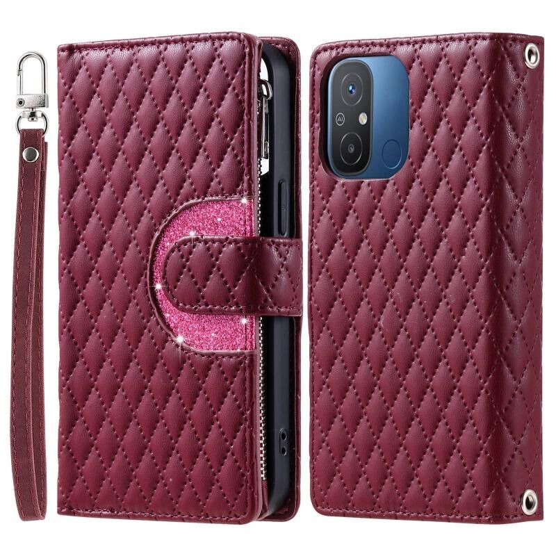 Για Xiaomi Redmi 12C / 11A Glitter Lattice φερμουάρ πορτοφόλι δερμάτινη θήκη τηλεφώνου (Κρασοκόκκινο)
