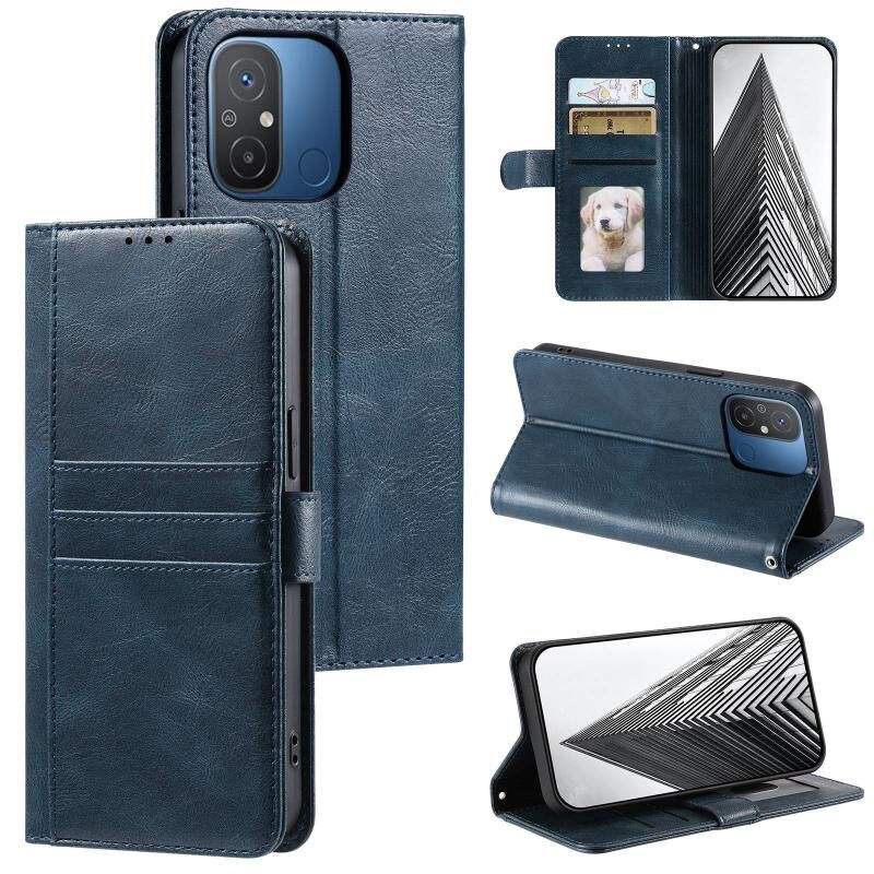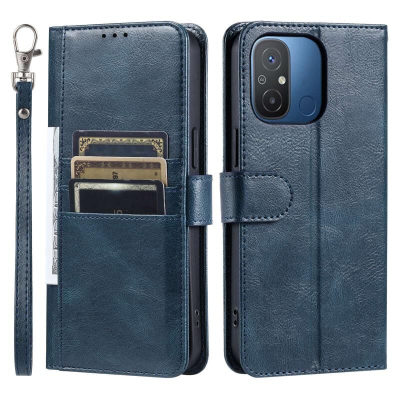 Για Xiaomi Redmi 12C / 11A Παγκόσμια απλή 6-Card πορτοφόλι δερμάτινη θήκη τηλεφώνου (Ναυτικό μπλε)