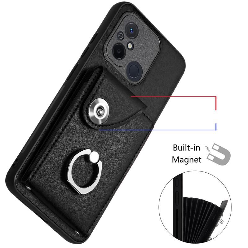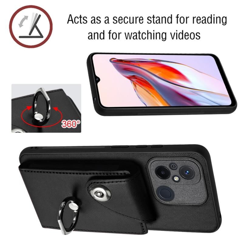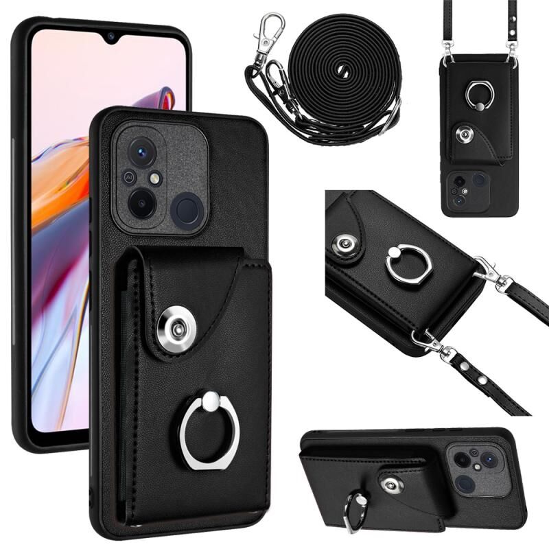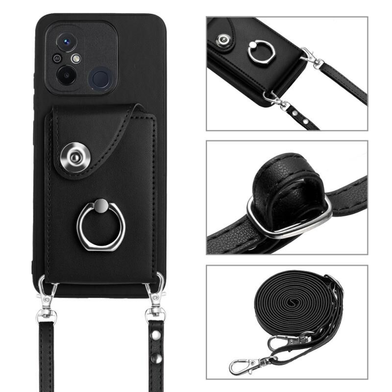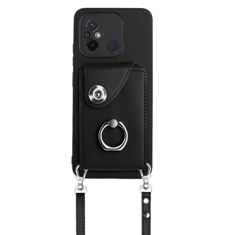 Για Xiaomi Redmi 12C / 11A Organ Card τσάντα δαχτυλίδι τσάντα κάτοχος τηλέφωνο υπόθεση με μακρύ κορδόνι (μαύρο)