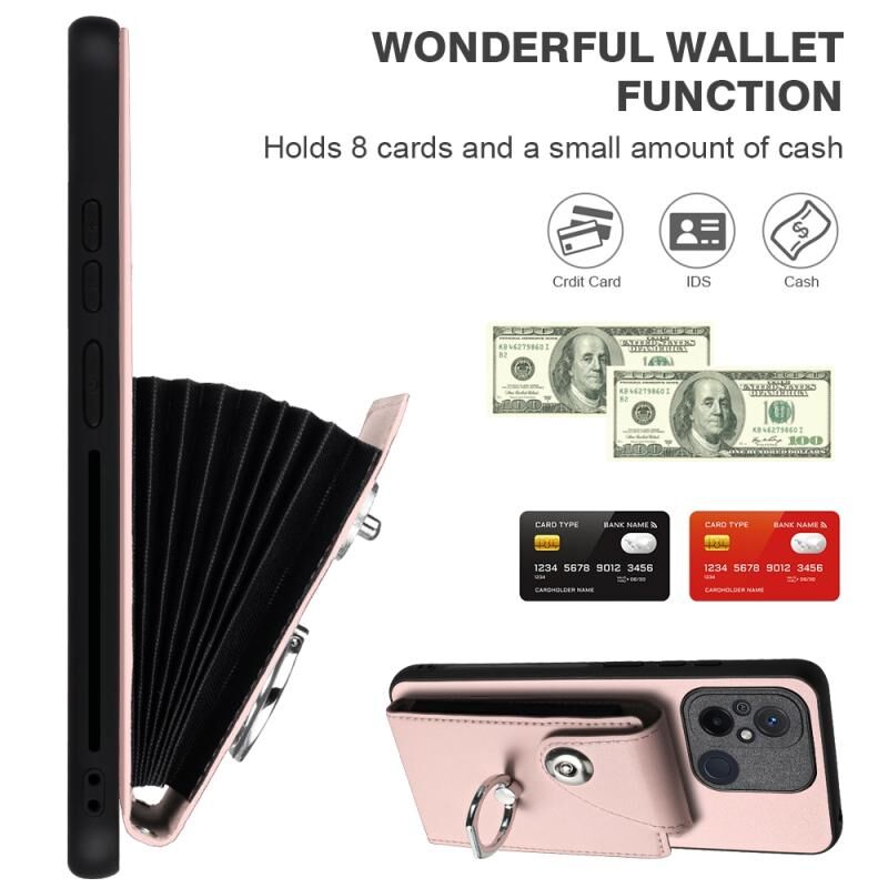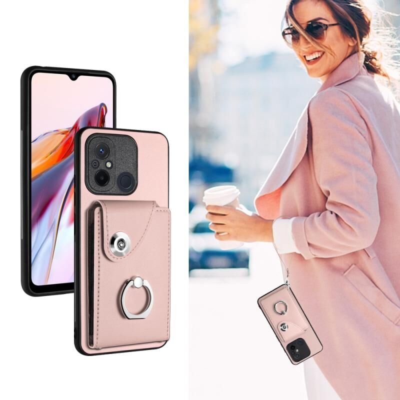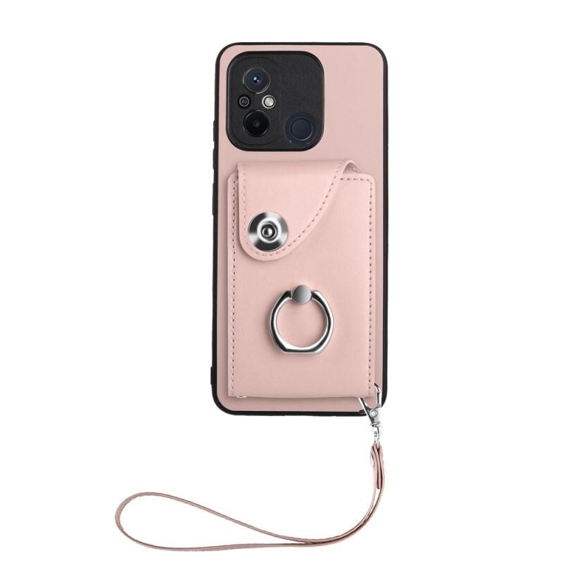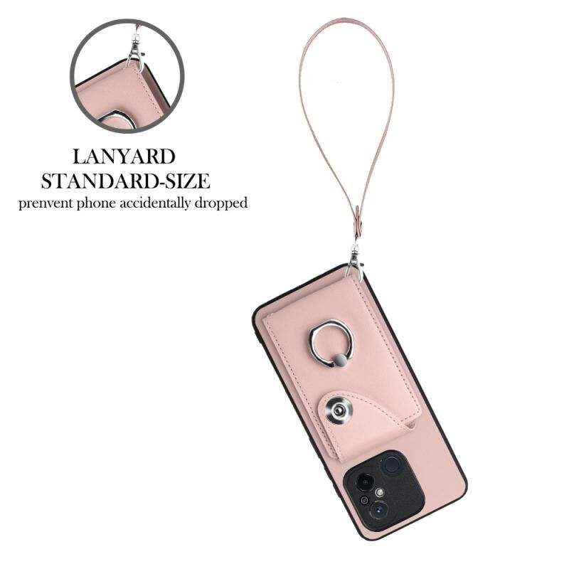 Για Xiaomi Redmi 12C/11A Οργανική κάρτα τσάντα δαχτυλίδι κάτοχος PU τηλέφωνο υπόθεση με κορδόνι (ρόζ)