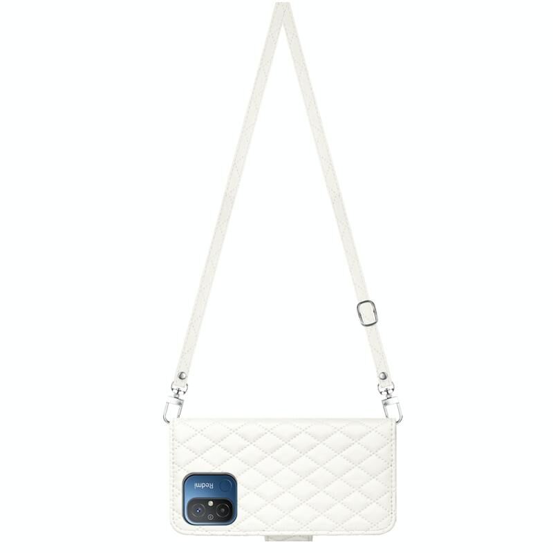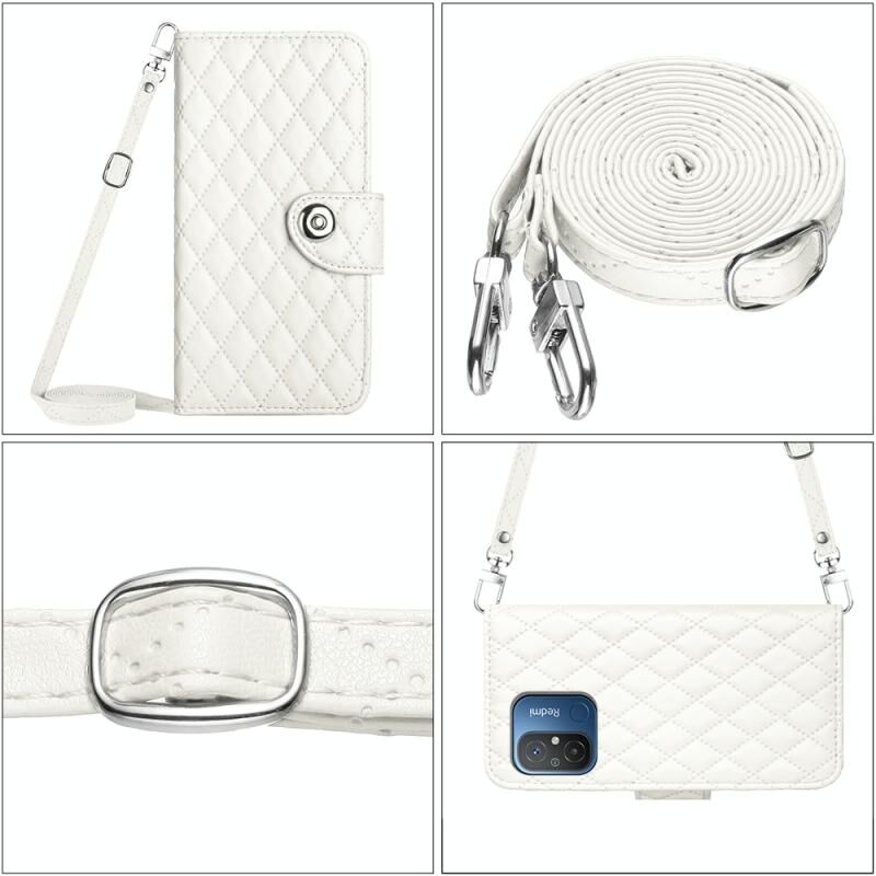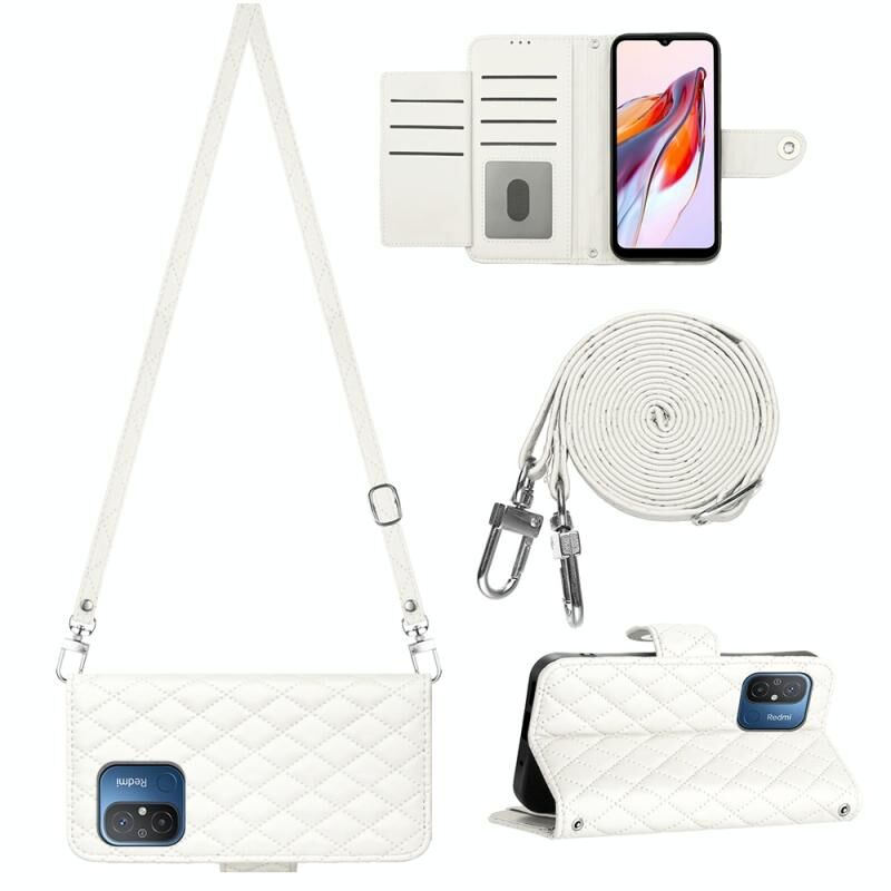 Για Xiaomi Redmi 12C / 11A / Poco C55 Rhombic υφή Flip δερμάτινη θήκη τηλεφώνου με μακρύ κορδόνι (λευκό)