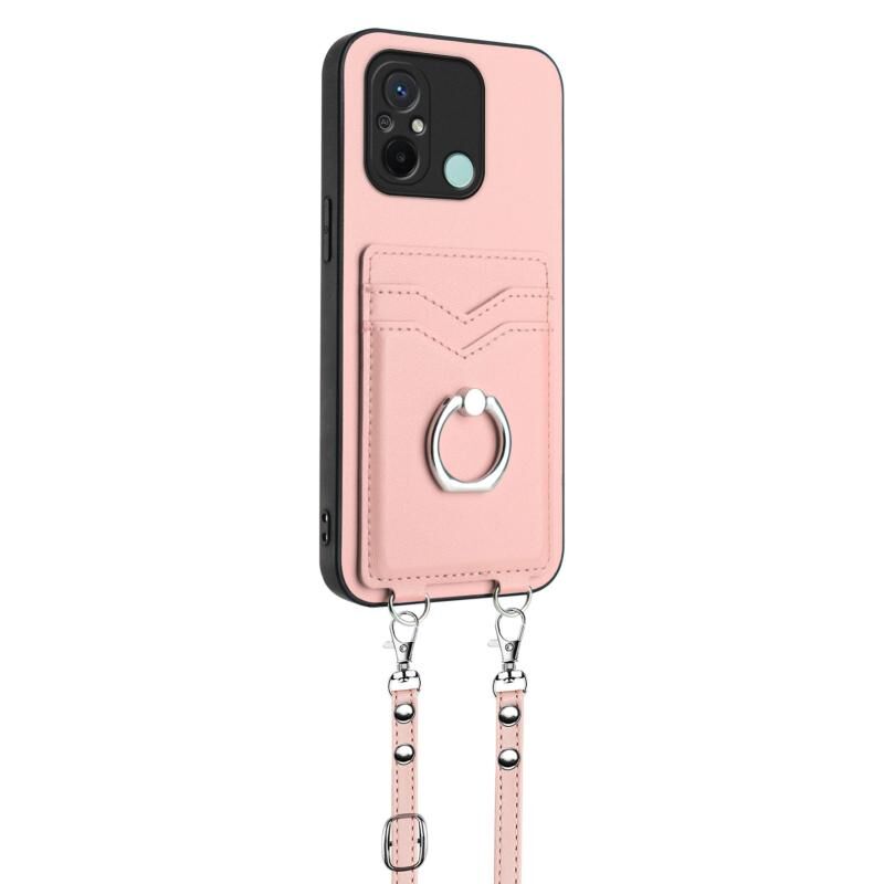 Για Xiaomi Redmi 12C / 11A R20 Crossbody σχοινί δαχτυλίδι κάρτας κάτοχος υπόθεση τηλεφώνου (ροζ)