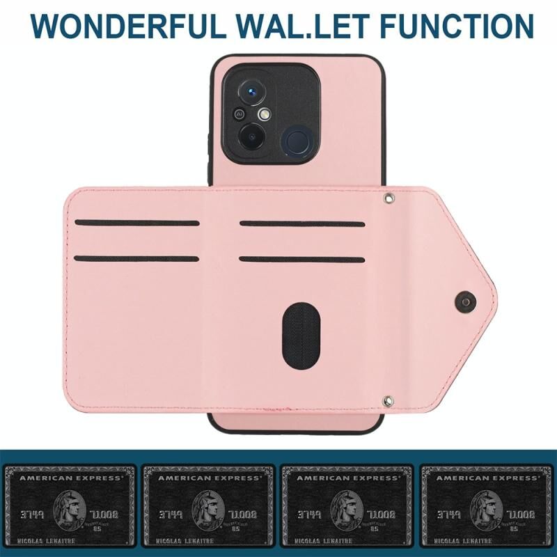 Για Xiaomi Redmi 12C / 11A Rhombic Υφή κάρτα τσάντα RFID υπόθεση τηλεφώνου με μακρύ κορδόνι (Rose Gold)