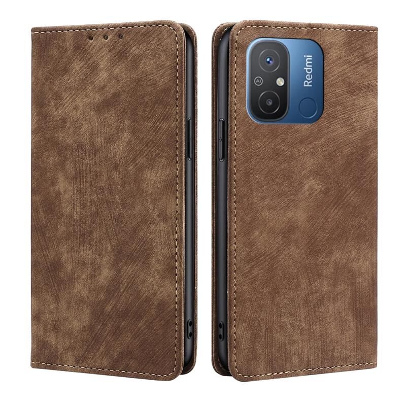 Για Xiaomi Redmi 12C 4G RFID Anti-theft βούρτσα μαγνητική δερμάτινη θήκη τηλεφώνου (καφέ)