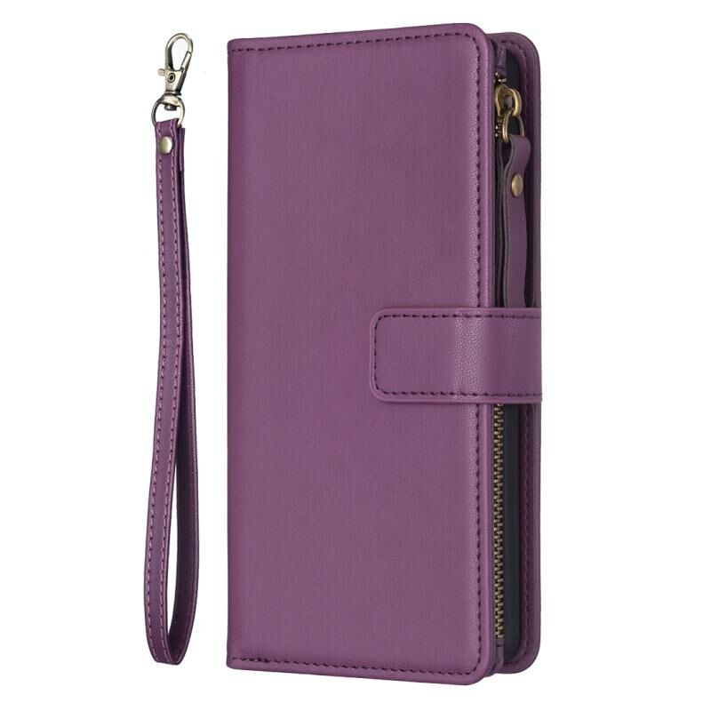 Για Xiaomi Redmi 12C 9 Card Slots φερμουάρ πορτοφόλι δέρμα Flip υπόθεση τηλεφώνου (Dark Purple)