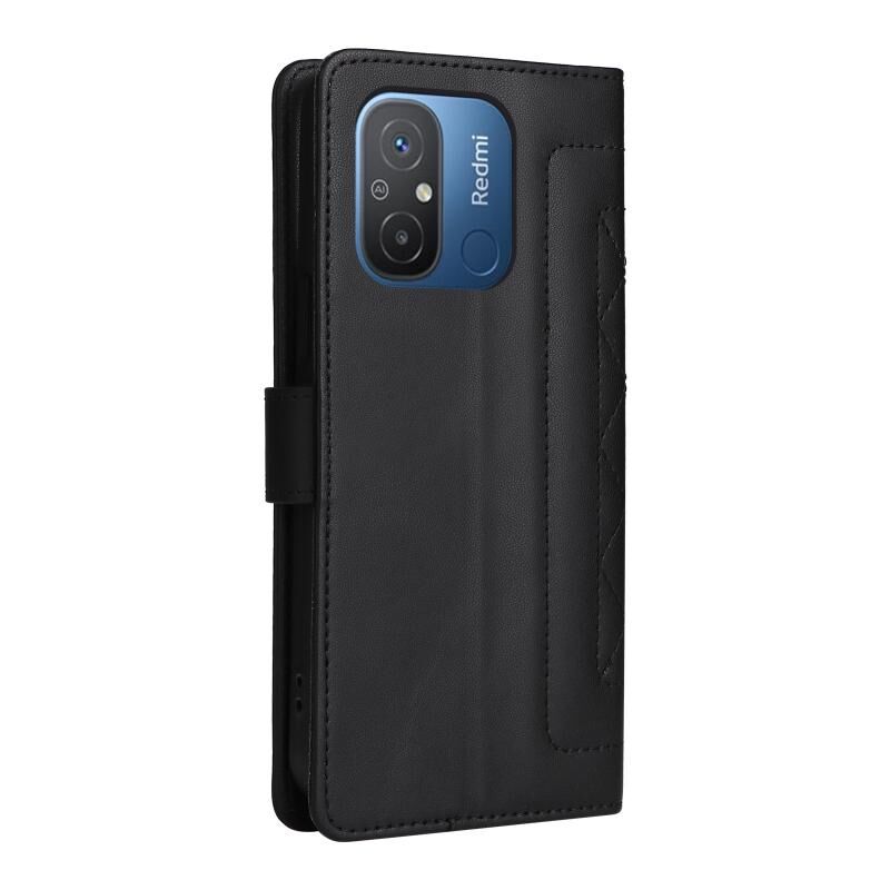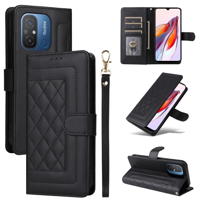 Για Xiaomi Redmi 12C Diamond Lattice δερμάτινη θήκη Flip Phone Case (Μαύρο)