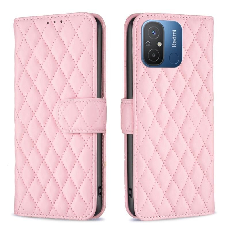 Για Xiaomi Redmi 12C Diamond Lattice πορτοφόλι δέρμα Flip τηλέφωνο υπόθεση (ροζ)
