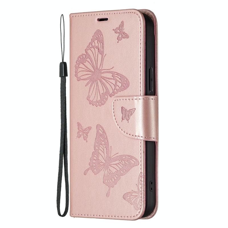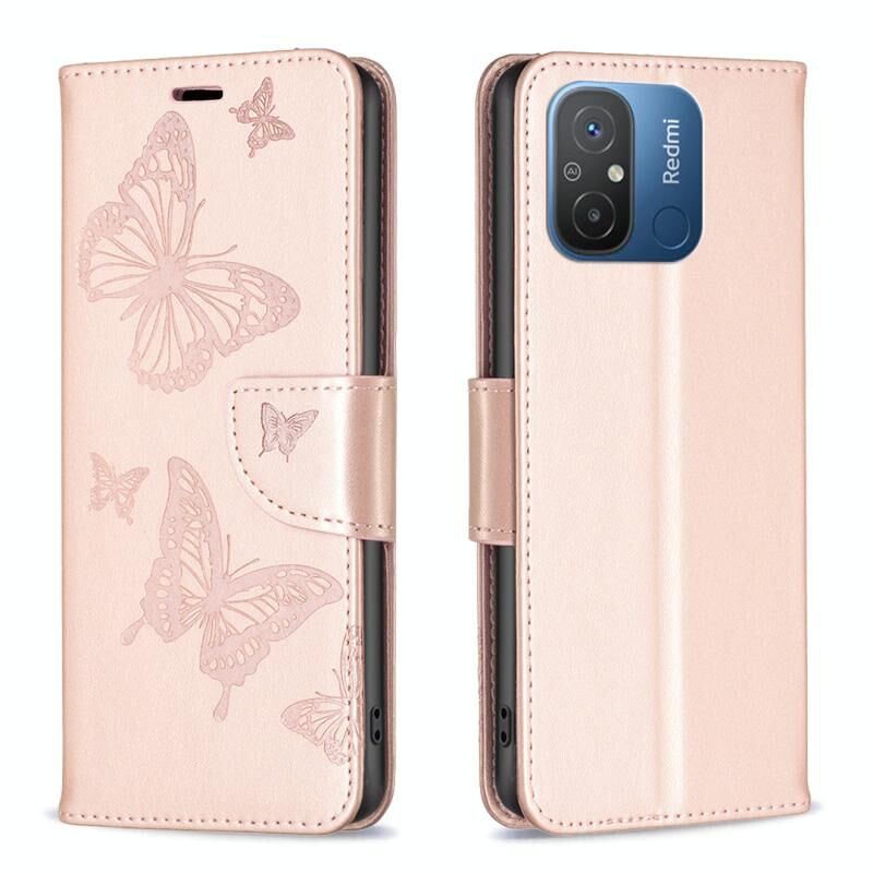 Θήκη τηλεφώνου δερμάτινη με ανάγλυφο σχέδιο δύο πεταλούδων για Xiaomi Redmi 12C (Ροζ χρυσός)