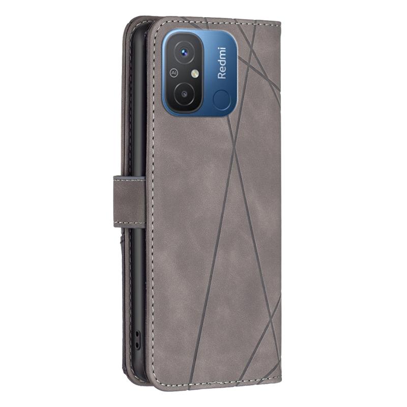 Θήκη τηλεφώνου δερμάτινη με μαγνητικό κούμπωμα και υφή ρόμβου για Xiaomi Redmi 12C (Γκρι)