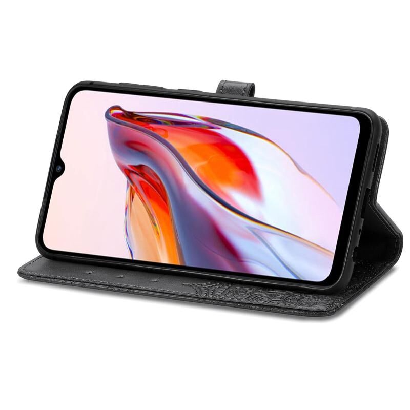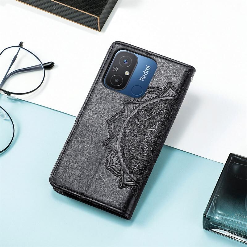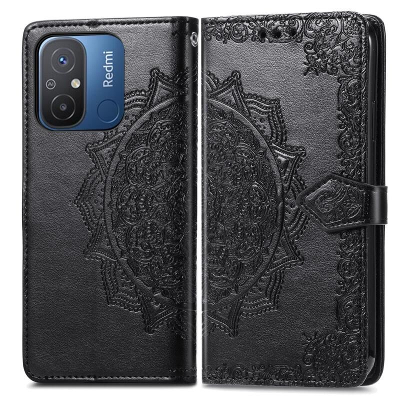 Για Xiaomi Redmi 12C Mandala λουλούδι ανάγλυφο δερμάτινη θήκη τηλεφώνου (μαύρο)