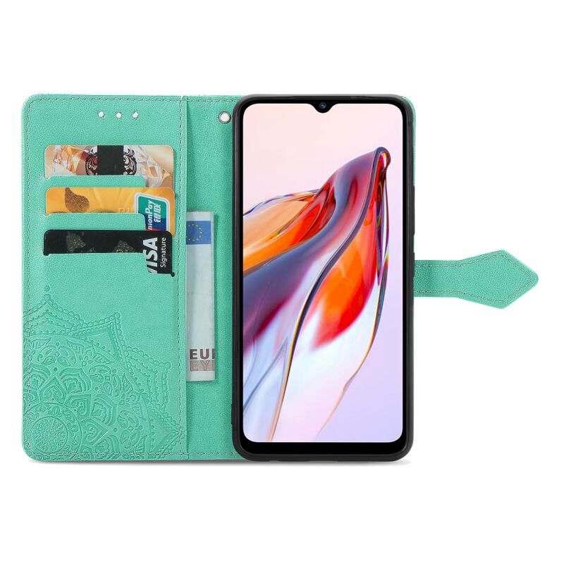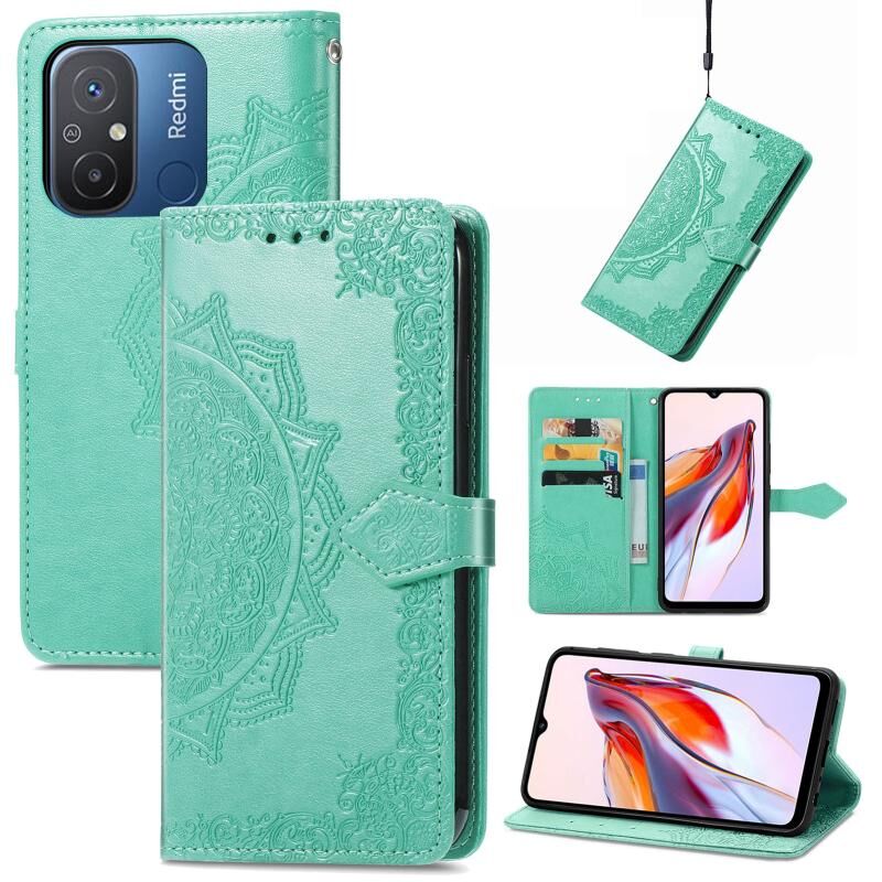 Για Xiaomi Redmi 12C Mandala λουλούδι ανάγλυφο δερμάτινη θήκη τηλεφώνου (πράσινο)
