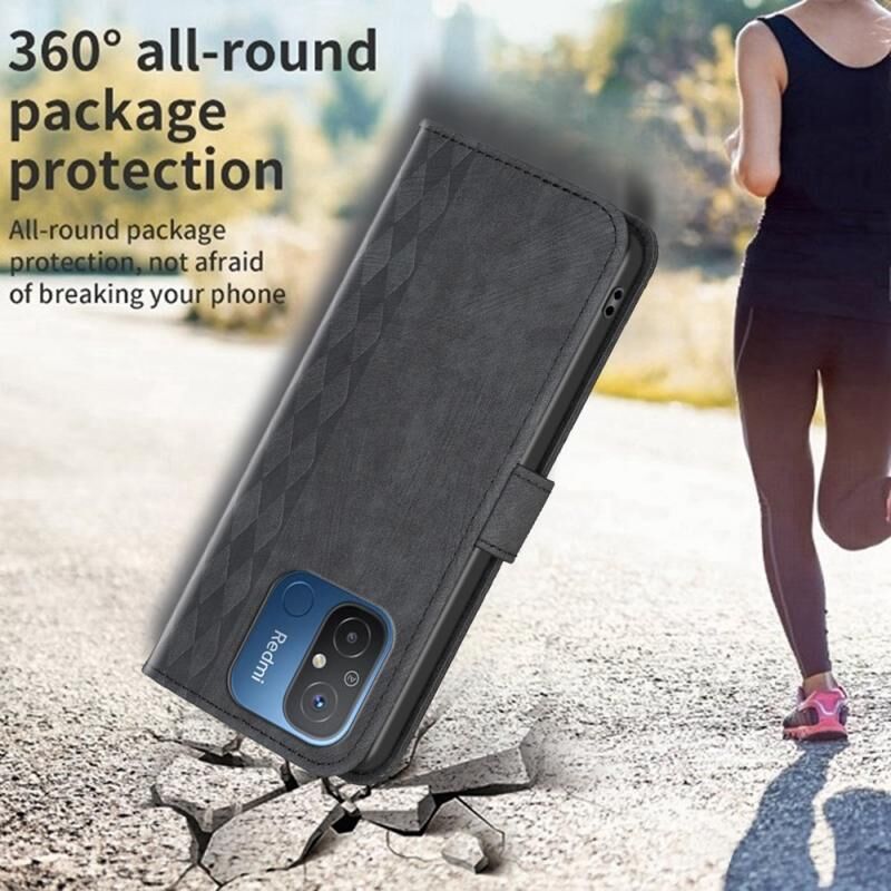 Για Xiaomi Redmi 12C καρό ανάγλυφη δερμάτινη θήκη τηλεφώνου (μαύρο)