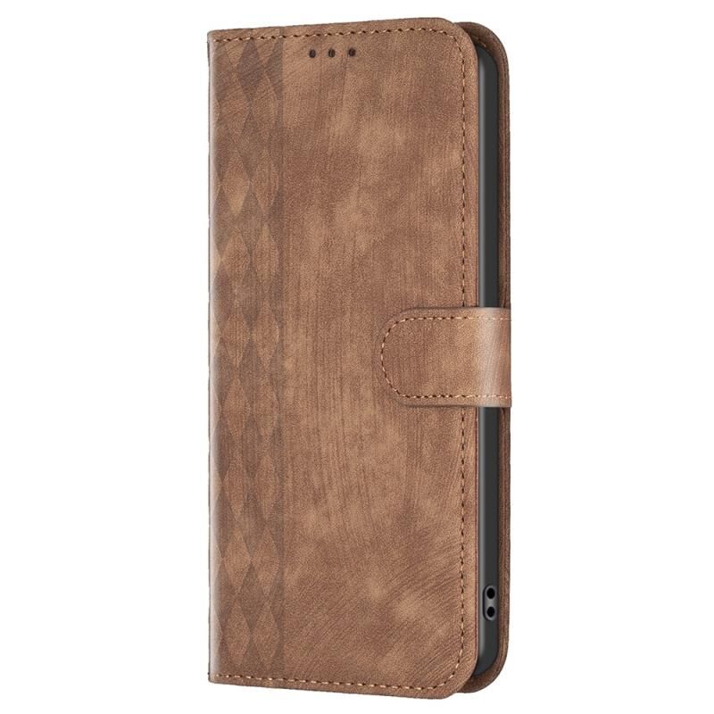 Για Xiaomi Redmi 12C καρό ανάγλυφη δερμάτινη θήκη τηλεφώνου (καφέ)