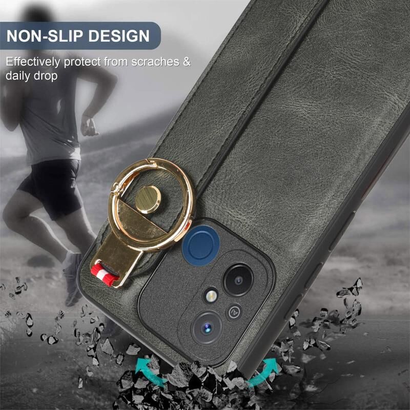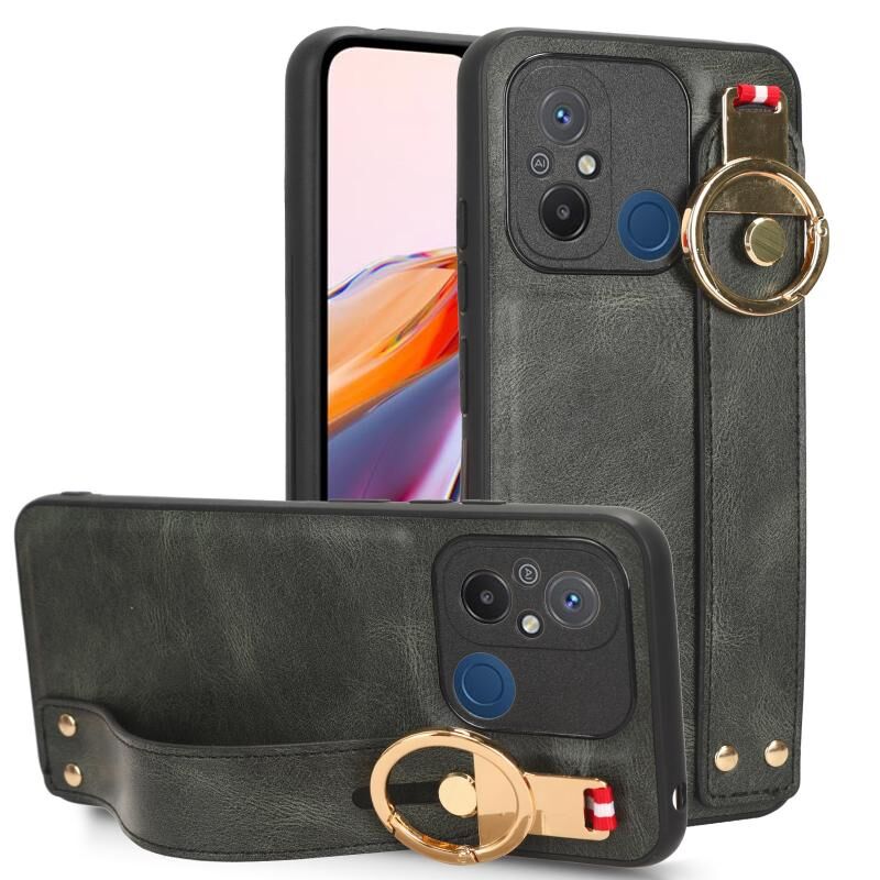 Για Xiaomi Redmi 12C / Poco C55 Wristband δέρμα πίσω υπόθεση τηλεφώνου (πράσινο)