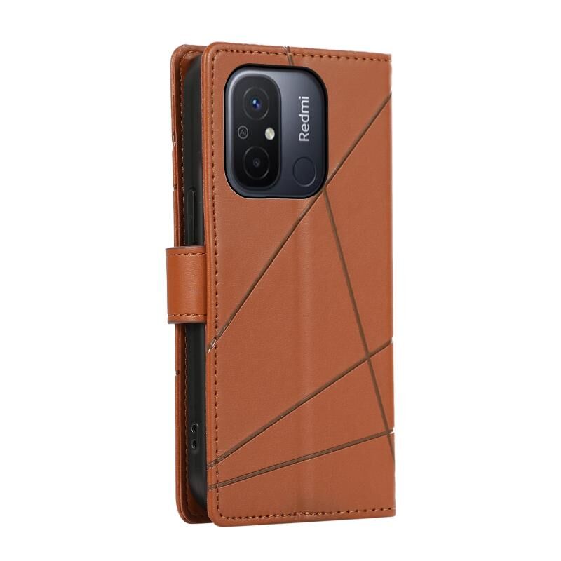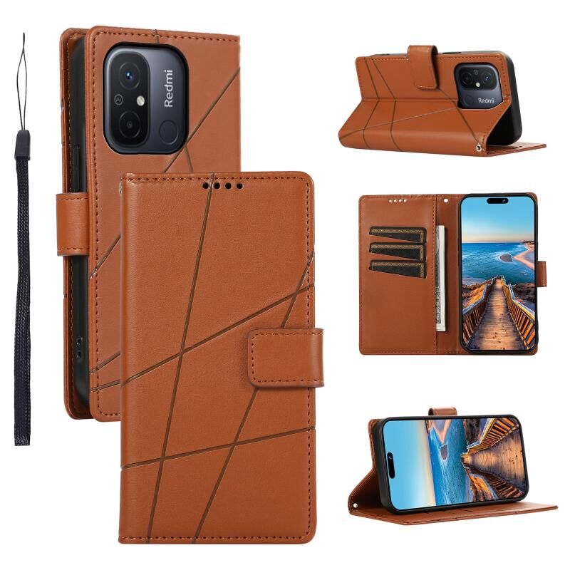 Θήκη τηλεφώνου Xiaomi Redmi 12C από γνήσιο δέρμα PU με ανάγλυφη υφή και λεπτή γραμμή (Καφέ)