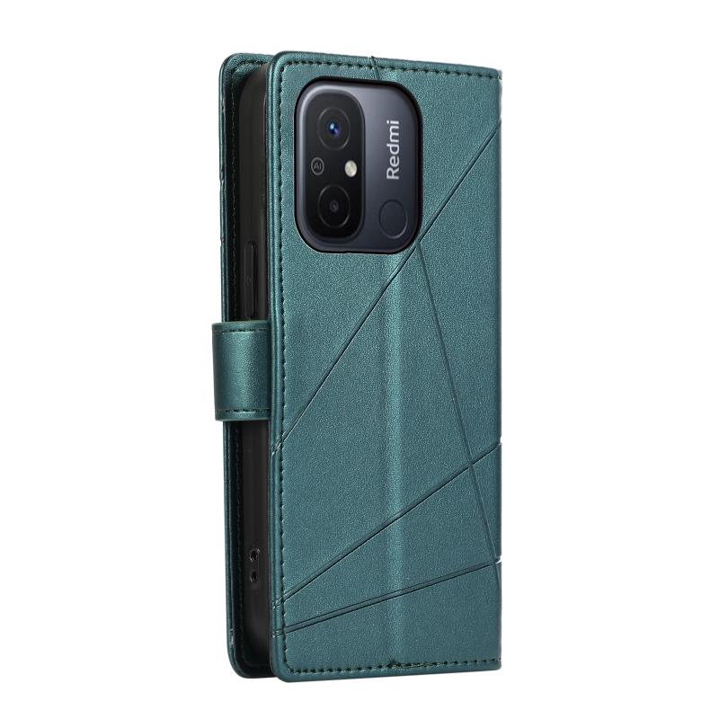 For Xiaomi Redmi 12C PU Genuine Leather Texture Embossed Line Phone Case(Green)