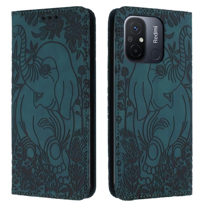 Θήκη τηλεφώνου δερμάτινη με ανάγλυφο σχέδιο ρετρό ελέφαντα για Xiaomi Redmi 12C (Μπλε)