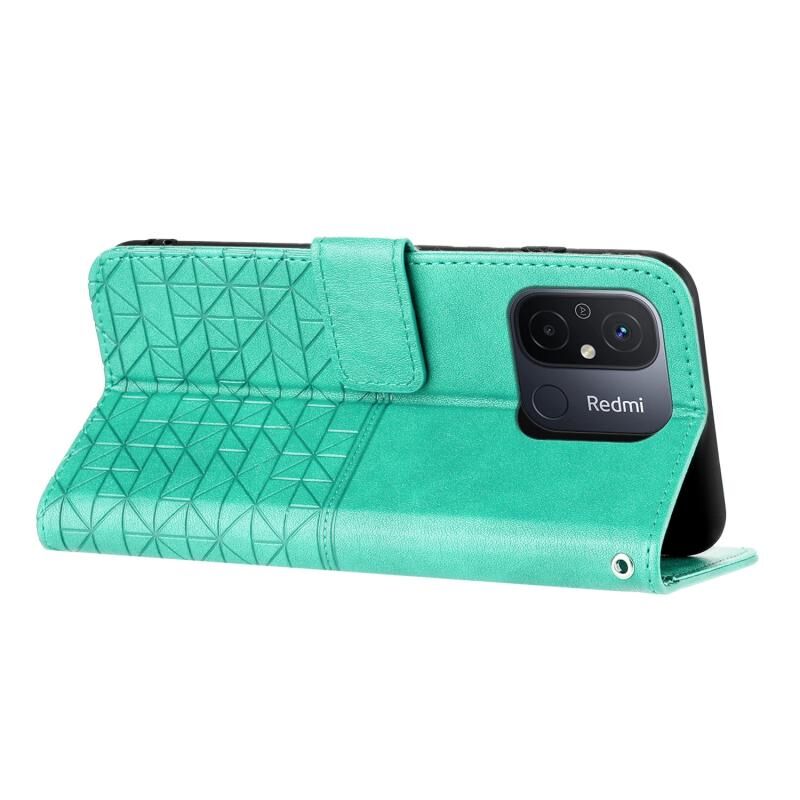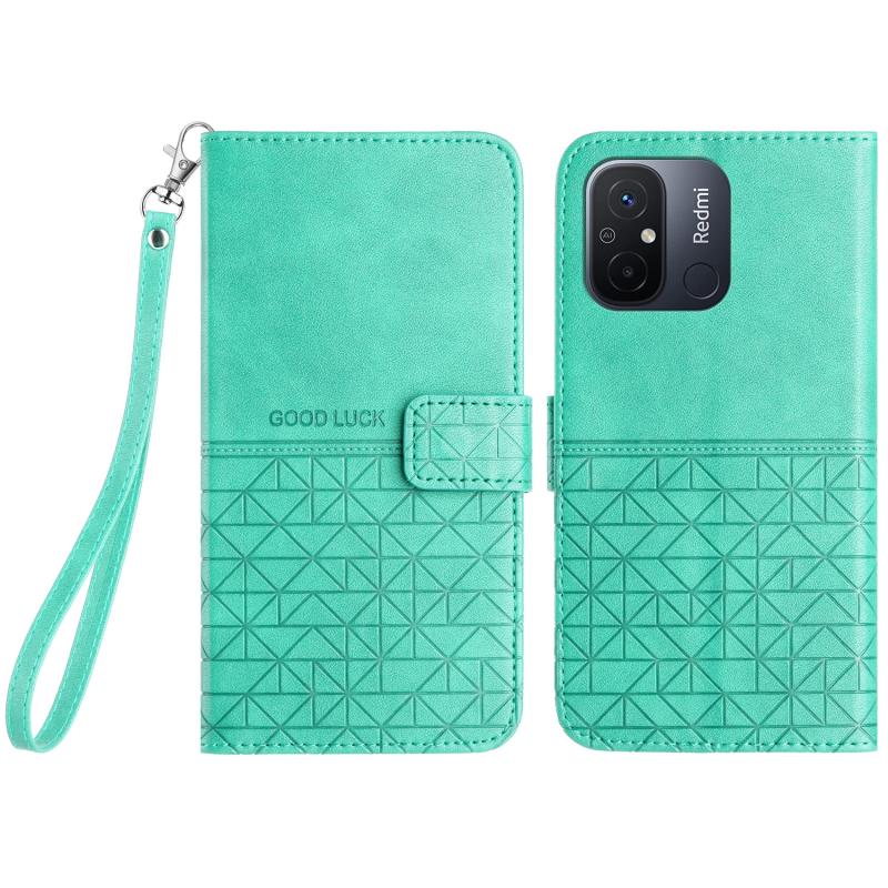 Θήκη δερμάτινη με κορδόνι για Xiaomi Redmi 12C - Ρομβωτό σχέδιο (Πράσινο)