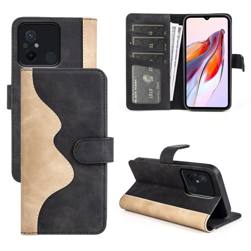 Για Xiaomi Redmi 12C ραφή οριζόντια Flip δέρμα τηλέφωνο υπόθεση (Μαύρο)