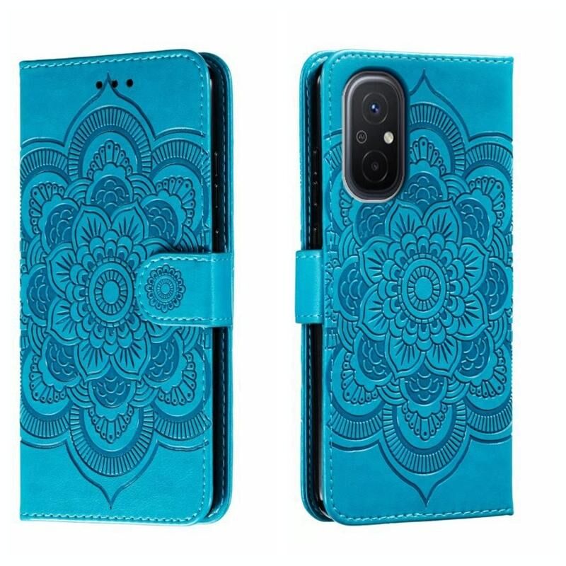 Για Xiaomi Redmi 12C Sun Mandala ανάγλυφο μοτίβο τηλέφωνο δερμάτινη θήκη (μπλε)