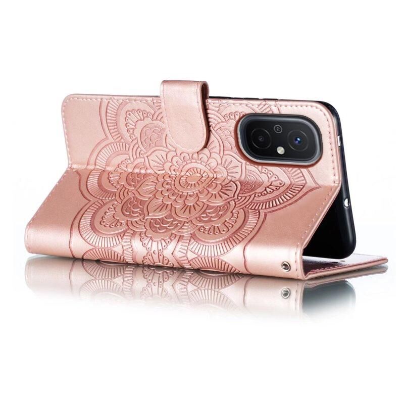 Για Xiaomi Redmi 12C Sun Mandala ανάγλυφο μοτίβο τηλέφωνο δερμάτινη θήκη (Rose Gold)