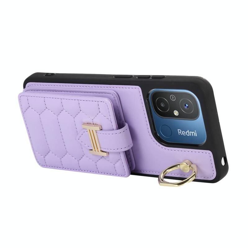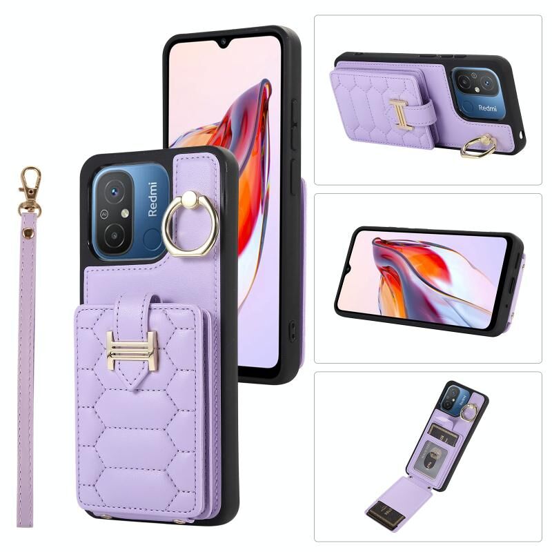 Για Xiaomi Redmi 12C Κάθετη κάρτα τσάντα δαχτυλίδι κάτοχος τηλέφωνο υπόθεση με διπλή κορδόνι (μωβ)