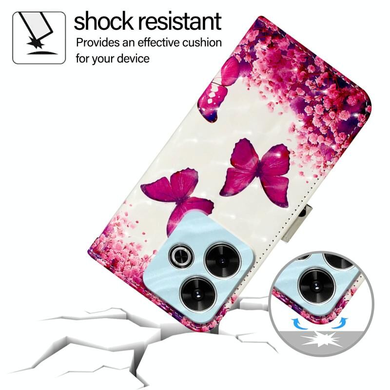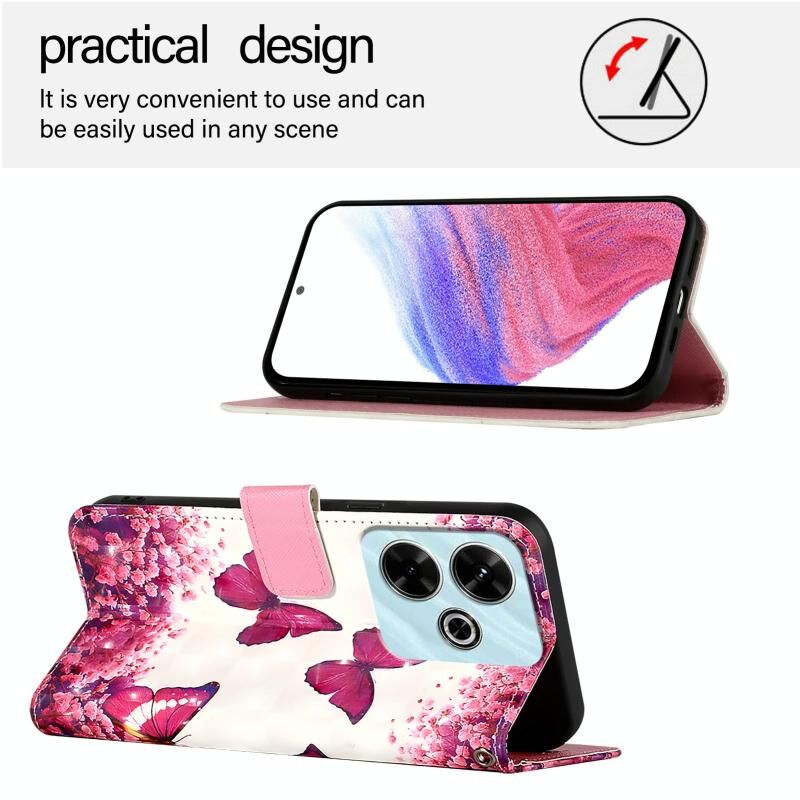 Θήκη τηλεφώνου δερμάτινη με οριζόντιο άνοιγμα και τρισδιάστατη ζωγραφική για Xiaomi Redmi 13 4G (Ροζ Πεταλούδα)