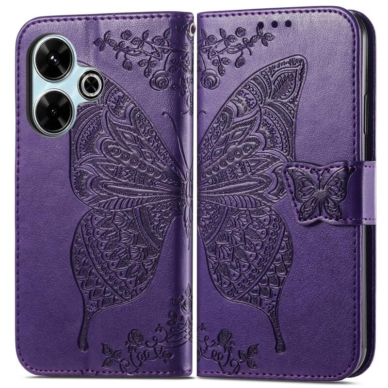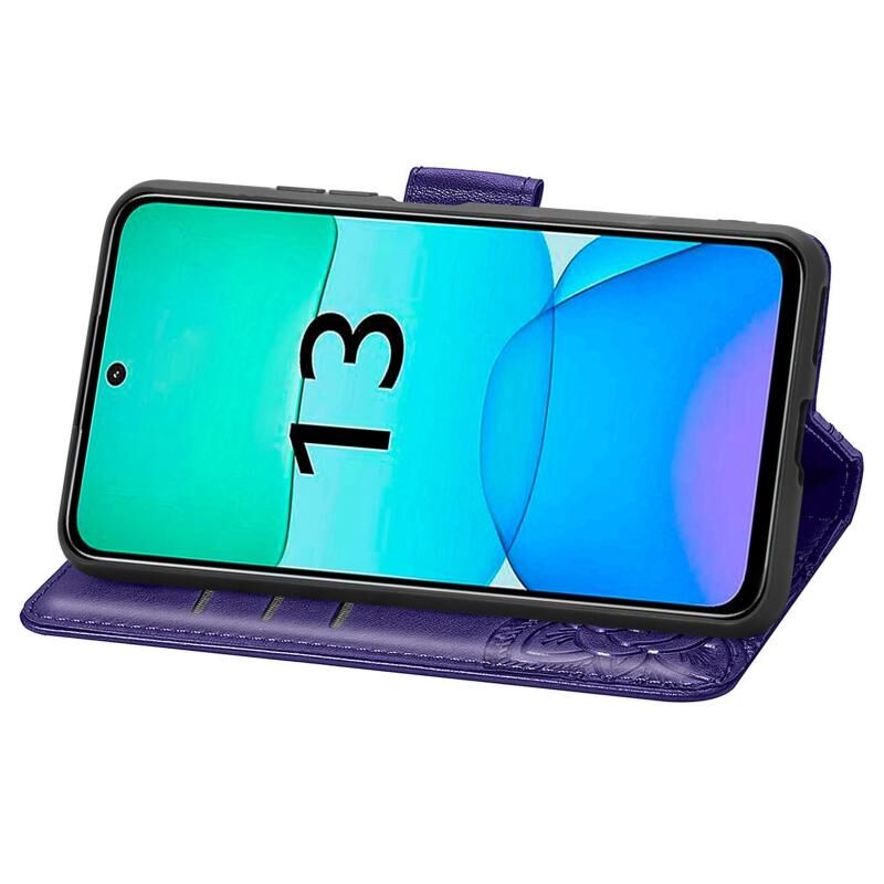 Θήκη τηλεφώνου δερμάτινη ανάγλυφη με σχέδιο πεταλούδας και λουλουδιών για Xiaomi Redmi 13 4G (Μπλε)