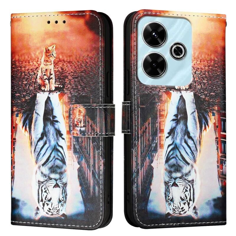 Θήκη τηλεφώνου από δέρμα με απλή ύφανση και πολύχρωμο σχέδιο (γάτες και τίγρεις) για Xiaomi Redmi 13 4G.