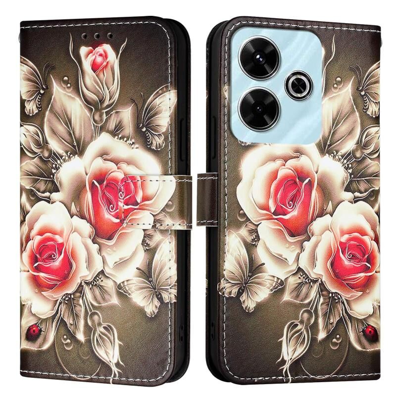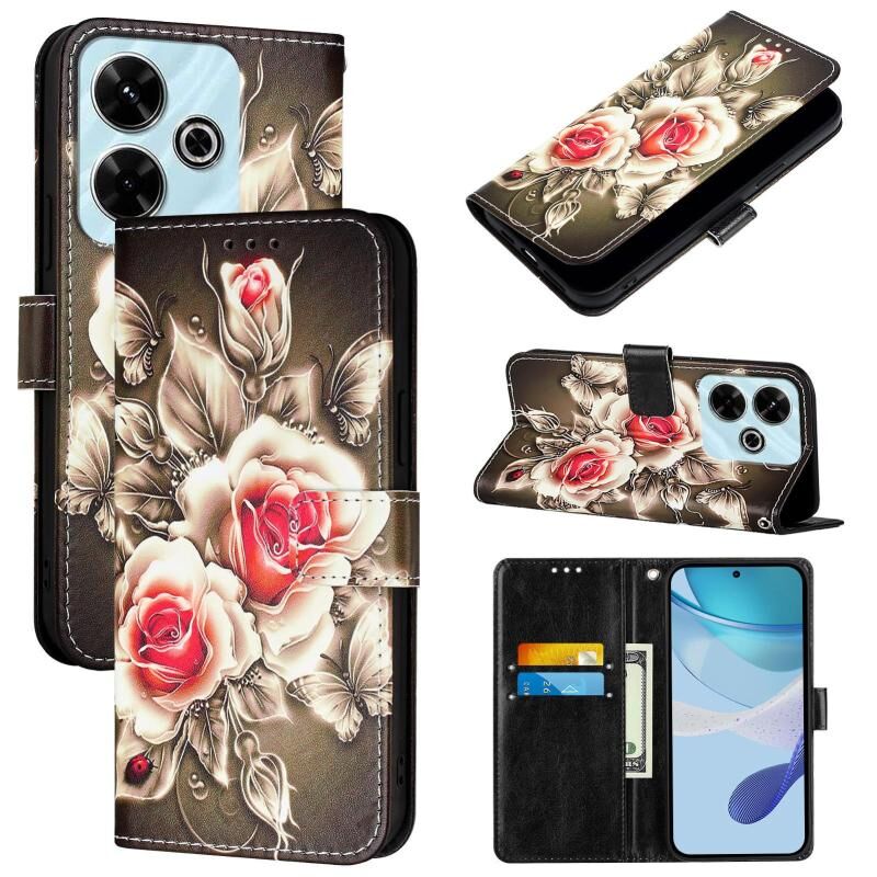 Θήκη τηλεφώνου από δέρμα με απλή ύφανση και πολύχρωμο σχέδιο για Xiaomi Redmi 13 4G (Τίγρη σε ασπρόμαυρο)