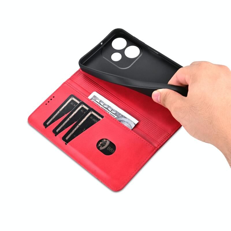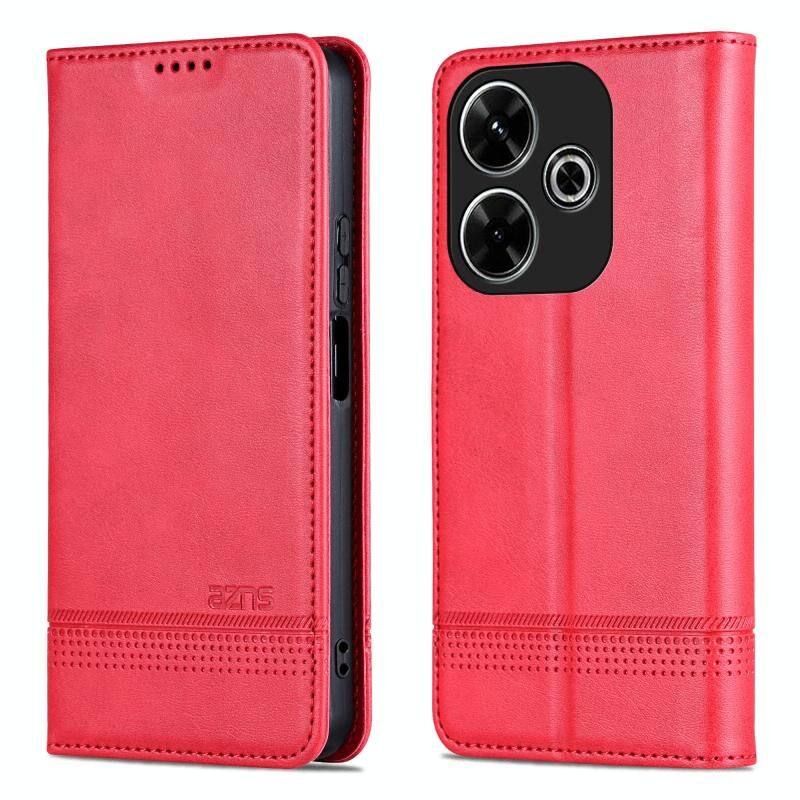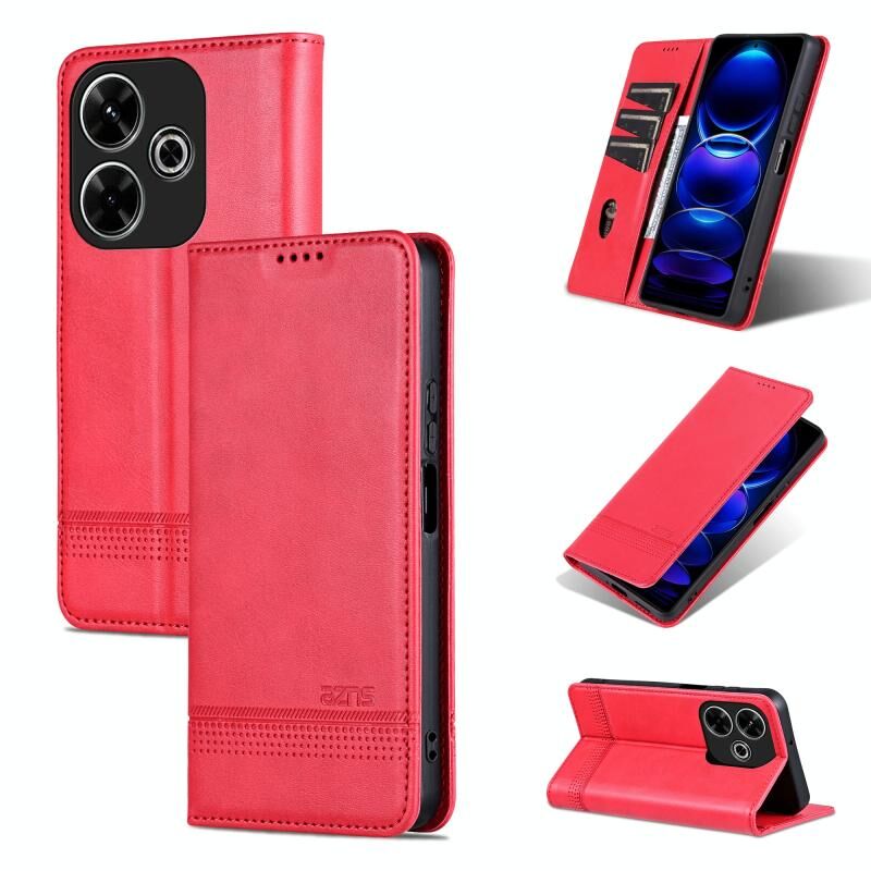 Για Xiaomi Redmi 13 4G Global AZNS Μαγνητικό μοσχάρι υφή Flip υπόθεση τηλεφώνου δέρμα (κόκκινο) (AZNS)