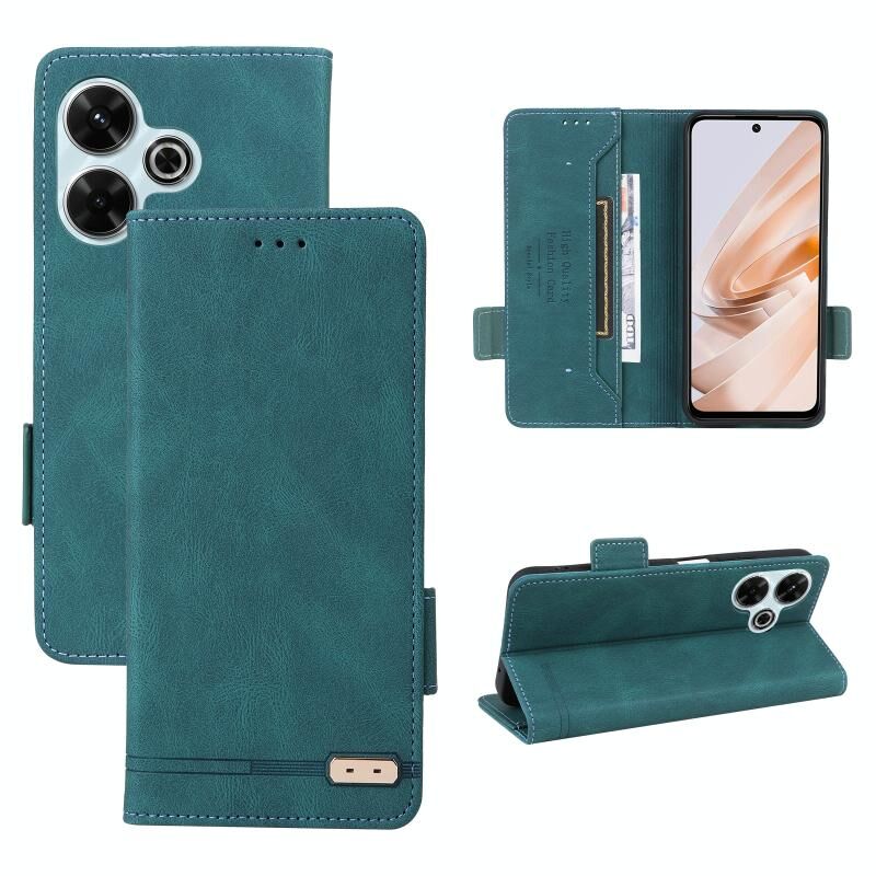 Για Xiaomi Redmi 13 4G Παγκόσμια μαγνητικό κούμπωμα δερμάτινη θήκη τηλεφώνου (πράσινο)