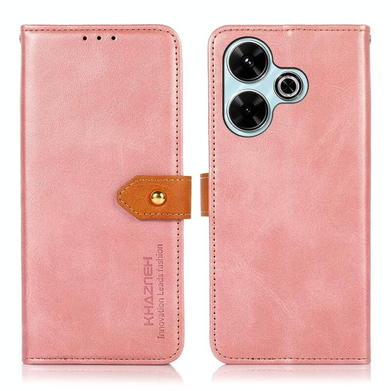 Θήκη τηλεφώνου από δέρμα με υφή δέρματος αγελάδας KHAZNEH για Xiaomi Redmi 13 4G (Καφέ)
