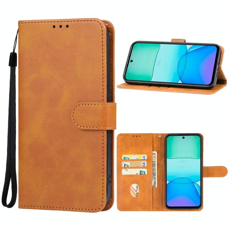 Για Xiaomi Redmi 13 4G Δερμάτινη θήκη τηλεφώνου (καφέ)