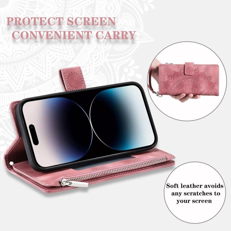 5. Πρακτική λειτουργία θήκης καρτών: Η υποδοχή κάρτας και η τσέπη πορτοφολιού με φερμουάρ και η θήκη μετρητών μπορούν να αποθηκεύσουν τις πιστωτικές σας κάρτες, τα μετρητά ή τα μικρά χαρτονομίσματα που χρειάζεστε καθημερινά.