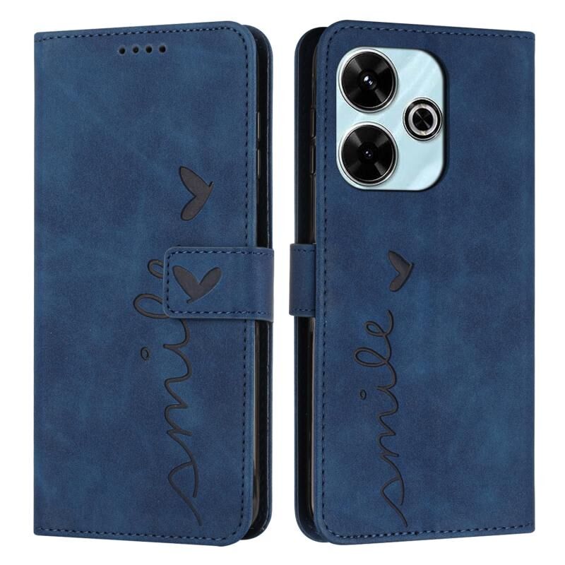 Για Xiaomi Redmi 13 4G Skin Feel Heart ανάγλυφη δερμάτινη θήκη τηλεφώνου με μακρύ κορδόνι (μπλε)