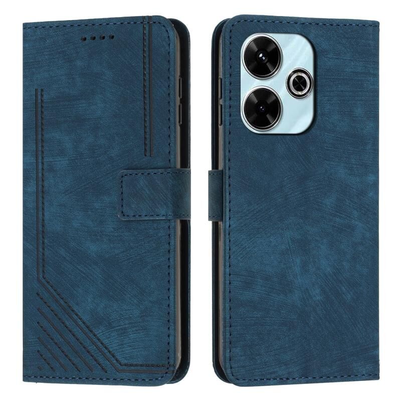 Για Xiaomi Redmi 13 4G δέρμα αίσθηση λωρίδα μοτίβο δερμάτινη θήκη τηλεφώνου με μακρύ κορδόνι (μπλε)