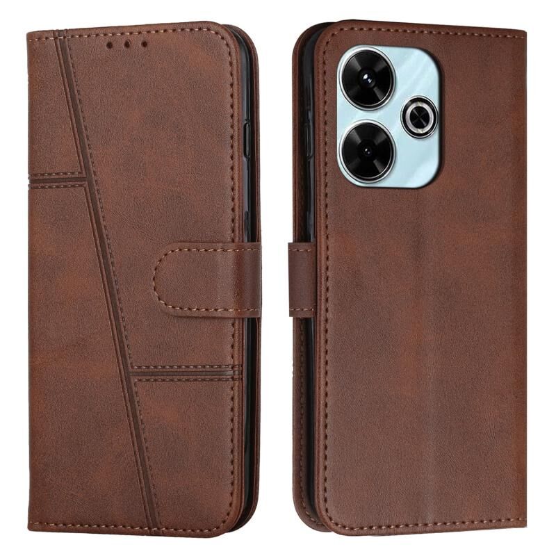 Θήκη τηλεφώνου από δέρμα με υφή μοσχαριού και μαγνητικό κούμπωμα για Xiaomi Redmi 13 4G (Καφέ)